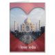 Bilden av Taj Mahal omges av ett hjärtformat ram och har ord "I kärlek India" under sig.