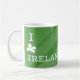 I kärlek Irland grönt mugg med grönt mönster och vit schamprock. Underbar som en presentidé för St. Patrick's Day.