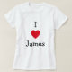 "I Kärlek" James garanterar med ett rött hjärta... perfekten St. Valentines daggåva till din älskling. Här visas ett svart teckensnitt mot en ljusgaranti, men du kan ändra både namn och teckensnittet färg eller storlekt.