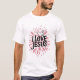 Den här fängslande grafiken har ett stiliserat hjärta inslaget i ett känsligt band som lyder "I Kärlek Jesus". Hjärtat är förtrollat av blommor och en smula grönt, symboliserar hängivenhet, tro och kärlek blomstrande för Kristus. Det pulserande färg framkallar värme och positivitet, skapar det en inspirerande design för troende. Bära denna t-shirt stolt för att uttrycka er tro och kärlek budskap