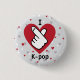 Använda den här beundransvärda knappen om du vill visa kärlek på K-pop. Knappen har en hand som visar ett hjärta i finger och en söt, röd hjärtbakgrund. Du kan ändra texten till namn på din favoritperson, grupp, till exempel BTS, BlackPink, Seventeen, Stray Kids, Twice, ATEEZ, Somi, Monsta X osv. Den här knappen skulle vara underbar för bära till Kcon eller en K-pop-konsert.
