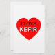 I kärlek kefir. Kefir är en naturlig probiotisk dryck gjord av mjölk. Rött hjärta med text.