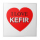 I kärlek kefir. Kefir är en naturlig probiotisk dryck gjord av mjölk. Rött hjärta med text.