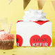 I kärlek kefir. Kefir är en naturlig probiotisk dryck gjord av mjölk. Rött hjärta med text.