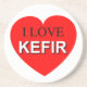 I kärlek kefir. Kefir är en naturlig probiotisk dryck gjord av mjölk. Rött hjärta med text.