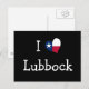 "I Kärlek Lubbock Texas", röd, vit och blå hjärtdesign på anpassade souvenir-kort som firar Lone Star-tillståndet.