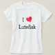 "I Kärlek Lutefisk" med en underbar rosa och rödhjärtsdesign. Förutom att ändra ord för att definiera vad du vill med kärlek kan du även ändra text och bakgrund för färg på många produkter.