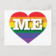 Detta vykort har ett regnbåge i pridet som täcks av det feta, vita, stora brev ME, officiellen förkortning för Maine, staten gräs träd. Baksidan av vykortet är tom och väntar på personligens text eller handskrivna känslor. Visa ditt sanna färg, stödja giftermål jämlikhet och fira gay pride.