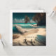 Turquise vatten och handflatan träd på ett vitt vykort för sandkonst. Citat: "I kärlek med havet."