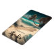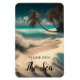 Turcoise vatten och handflatan träd på en vit sandstrandmagnetkonst. Citat: "I kärlek med havet."
