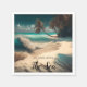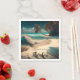 Ocean Temed papper napkins. Turquise vatten och handflatan träd på en vit sandstrandart. Citat: "I kärlek med havet."