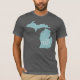 Michigan silhouette i blått grått fylls med mjuka vita prickar och "I Kärlek Michigan" från Michigander.