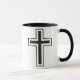 Kaffet mugg säger att jag Kärlek Min kyrka i svart stil på ena sidan och den andra har kor.