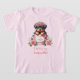 En rottweilervalp i en pail med ro och kärlek "I KÄRLEK my Rottweiler" i rosa på en flickas t-shirt