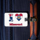 Leuke bagagelabel met de tekst: i kärlek Missouri (i hjärta Missouri) Het hart uppfylls de vlag van de staat Missouri. Blauw, rood en wit.
