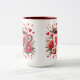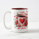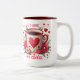 Det här är ett kaffe mugg. Den har en dekoration av ett mugg med ett dekorerat rött hjärta. Där finns blommor och andra små röda hjärtan. Det har ord I Kärlek mitt kaffe.