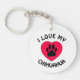 En söt svart hund skriver ut inuti ett rött hjärta. Text och bilder är anpassade: du kan ändra texten, lägga till vilken ras du vill kärlek. Ursprunglig design med böjd text för hundälskare.