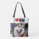 Tote-väskan för att fira kärlek för dig hund. Anpassa med ditt eget hund-foto. Finns i flera stilar och storlekar.