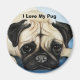 Det här är en 2-1/4-tums rundad magnet med en återgivning av min ursprungliga vattenfärgsmålning av en pug.