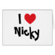 "I Kärlek Nicky"-design med funky hjärta och typsnitt. Om du inte hittar namn vill du anpassa den här designen för att skapa din egen gåva.