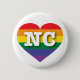 Den här knappen har ett hjärta med en utformning av pridet för regnbåge och brev NC. Längst upp i rand, innanför hjärtat, finns det feta, vita, huvudstaden brev NC, officiellen förkortning för delstaten North Carolina, tjärhälstaten. Visa ditt sanna färg, stödja giftermål jämlikhet och fira gay pride.