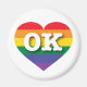 Den här magneten har ett regnbågshjärta som täcks av det feta, vita, stora brev OK, officiellen förkortning för Oklahoma, det tidigare pridet. Visa ditt sanna färg, stödja giftermål jämlikhet och fira gay pride.