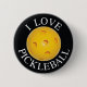 Knapp med svart bakgrund och gult pickleball i mitten.