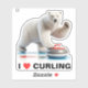 En förtjusande illustration av en atletisk polar, skicklig med att bota, glida en sten med precision på en glansig isrink, perfekt för vintersportentusiaster och kurande fläkt.