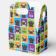 I Kärlek Pugs Färg Squares Party Gift Box har havererat och svarta puggar i färglösa fyrkanter.