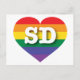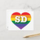 Det här vykortet har ett hjärta med regnbåge och pride SD. Längst upp i regnbågen i hjärtat finns rand i huvudstaden brev SD, förkortningen officiell för tillståndet South Dakota, i ett fet vitt typsnitt. Visa ditt sanna färg, stödja giftermål jämlikhet och fira gay pride.