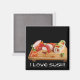 En vision om att göra något sushi älskare mun vatten! Ett urval av sashimi, nigiri och maktiv vilar på en traditionell träbräda. Tonfisk, lax och gult svan i röda nyanser, rosa och orange gör en färgstark presentation tillsammans med orange ingefära och wasabi.