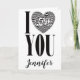 Det är bättre att säga på Alla hjärtans dag än "Jag kärlek du". Ord kärlek ligger i ett svart och vitt, randigt hjärta där en del av rand går över och en del under brev.