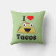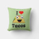 Visa kärlek för tacos med den här söta roligten kudden! Textens färg och typsnitt samt bakgrunden färg i kudden kan ändras så att de passar dina önskemål. Tacos!