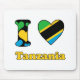 Ik houd van Tanzania muismat. Jag har Tanzania i hjärtat. Afbeelding van een hart träffade de Tanzanias vlag erin. De kleuren zijn groen, geel, zwart en blauw.