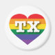Den här magneten har ett regnbågshjärta som innehåller det feta, vita, stora brev TX, officiellen förkortning för Texas, det enda pridet. Visa ditt sanna färg, stödja giftermål jämlikhet och fira gay pride.