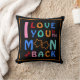 Jag kärlek er till måne och på framsidan av denna kudde med en orange gräns mot en svart bakgrund. Ord för familj och vänner! Gör en underbar gåva.