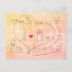 Vykort med kemiska glasvaror med en "I kärlek U"-bild. Kortets baksida är en lätt färgad till ram för ditt handskrivna meddelande till någon speciell.