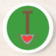 Den här sandstenen i fantastisk underlägg en bild av en spade med ett hjärta på den och text som säger "I kärlek ". Spadden har grävt skrivningen till en trevlig grönt, cirkulär gräsmatta.
