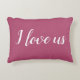 "I kärlek us" i söt skript på en kompakt accentkudde. Färg är sötens rosa av bär, och vi har det även i många andra färger. Ta en titt på de andra med ett enkelt klick för att se vilket stänk i färg som skulle se bäst ut för att lägga till detta älskande budskap till din hemskår. Det här exemplet har ett tvättbart bomullstäcke, men det är också enkelt att välja andra infrastrukturalternativ med olika priser.