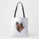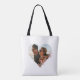 Enkel och söt rosa och vit "I kärlek us"-penselskript med hjärtfoto till väskan.