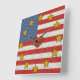 Roligtens väggklocka har Leslie Sigal Javoreks beundransvärt ursprungliga patriotiska utformning som baseras på den amerikanska Flagga: med växelvis polkapunktade rand av rött och vitt. Ett polka-punktat blått block i det lämnat övre hörnet. Senapssenapsstjärnor i färg är timmarkörer och ett skuggat rött hjärta i mitten. Välj fyrkantig eller rund stil.