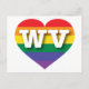 Detta vykort har ett regnbågshjärta som täcks av det feta, vita, stora brev WV, officiellen förkortning för Väster Virginia, bergsstaten. Visa ditt sanna färg, stödja giftermål jämlikhet och fira gay pride.