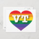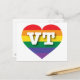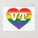 Detta vykort har ett regnbågshjärta som täcks av det feta, vita, stora brev VT, förkortningen officiell för Vermont, grönt bergsstat. Visa ditt sanna färg, stödja giftermål jämlikhet och fira gay pride.