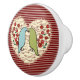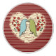 HoMeArts ursprungliga utformning av Robin's äggblått och avocado grönt lovebird som omges av grenar och röda hollbär i ett citronhjärta i gulten som står ut från en bakgrund av mörk rött och grädde färgad rand.