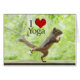 Ett foto av en söt ekorre som gör en yogart med texten "I Heart Yoga" ovanför honom. Dekren är på träpåsen på ett däck utanför, på yogaplatsen med tassar framför honom, ett ben bakom honom i luft och hans svan raka ut. Denna ekorre nöjer sig uppenbarligen med att göra sina yogaövningar utomhus, omgivna av naturen, med träd i bakgrunden. Det ser ut som om han gör sin version av sol-hälsningen och kanske ska gå in i nedåtgående hund. Du kan få den här söta ekorren bild tryckt på många olika produkter som lätt kan anpassas. Om du, kärlek yoga, och du tänka ekorrar är söta, är det här fotot för dig!
