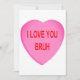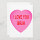 Jag kärlek du Bruh Valentine Day Greeting Card. Ljus rosa hjärta med rött brev. Trendig, roligt, minimiförteckning, klassisk utformning. Se bild på andra gåvor, se nedan. Tom inuti så att du kan skriva ett personlig-meddelande. Köp det här till din favorit Bruh. Köp för Alla hjärtans dag, Grattis på födelsedagen, jul eller bara för att.