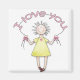 Söt tjej som håller på att strömma och säger "Jag kärlek du"