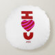Du kan beundra min Alla hjärtans dag teckning och det romantiska teckning som jag kallar "I Kärlek You", ett rött och rosa strimlat hjärta, som läggs till i denna runda dekorativ kudde.