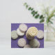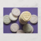 Ett vykort med coola som visar ett konstnärligt foto av kärlek hjärtsötsaker.