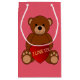 Cute, vintage bild av en tonåring som håller ett hjärta med "I Kärlek You" skrivet på den, finns på framsidan och baksidan av denna lilla presentsäck. Den här färgfulla presentpåsen är perfekt för små eller små gåvor till Alla hjärtans dag, årsdagar med mera!